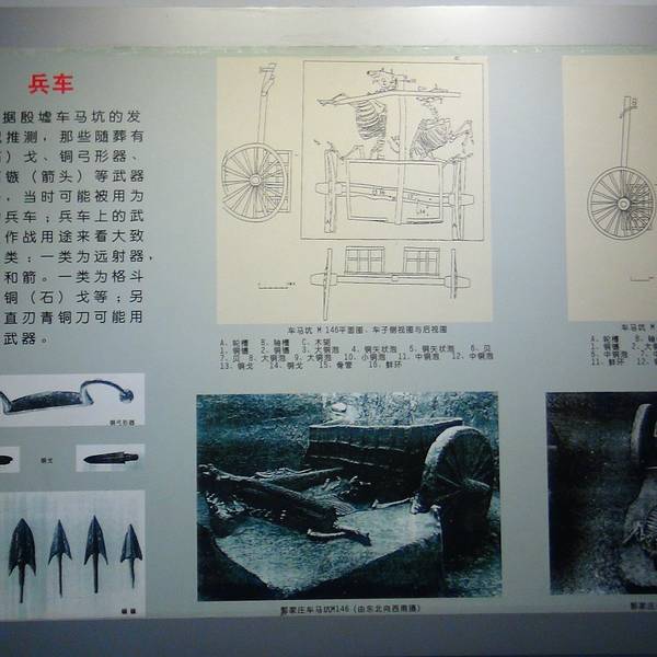 遗址,即:车马坑,陪葬坑。大型的车马坑都附有详细的介绍。