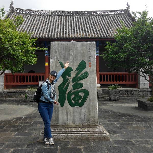 杜文秀和元帅府就在大理古城里面的一个景点,进去无需门票,进去后门口有两台大炮,元帅府大厅的大门没有对外开放,因此只能在大炮面前拍照。大厅右手边有一条小路,可以直接去后花园,后花园有一块又大又圆的大石头,上面刻着一个倒转的福字,寓意福到,其实元帅府就是看炮台,和这块大石头,其他的地方都没有开放,大门都是紧闭。所以这里十分分钟就可以走完的景点。反倒元帅府隔壁的卖染布的小店铺值得逛,门口很小,但是进了门之后,有一条很窄的小巷,巷子的两边墙挂满染布,过了小巷就是一个小院子,院子里也是挂满了染布,风一吹,染布就飘起来,非常漂亮,而且里面的染布都是老板自己做的,价钱比外面的便宜,最重要可以讲价。如果到元帅府参观完可以到隔壁的上铺买染布。