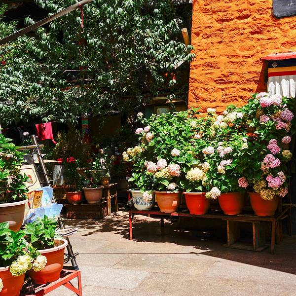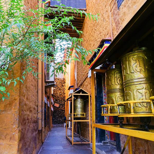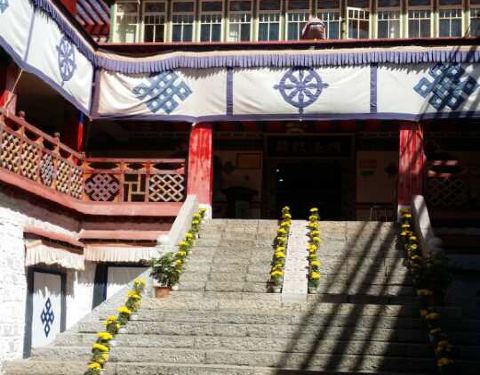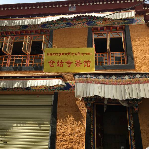 仓姑寺位于林廓南巷,属于老城区,是当地少有的一座尼姑庙。因当年藏王松赞干布在此挖洞闭关修行而声闻天下,是一所具有相当知名度的尼姑庙。仓姑大殿坐北朝南,是一幢三层建筑,二、三层为佛堂,寺内主供千手千眼菩萨像,也供放着松赞干布、寺庙创建者之一的帕崩卡德庆宁布像。仓姑寺较有名的是主佛殿一层地下的松赞干布修行洞。洞内供奉着藏王松赞干布的塑像,每天有三名专职的尼姑在这里,按时诵经祈祷,摆放供品,或是替换灯油。仓姑寺有着与众不同的传统和风格,这里不仅是女性佛者的乐园,同时也是一些社会中的女性们学习佛教、文化和各种知识的场所。甜茶馆走进寺庙大门,就是一个很大的露天茶馆,甜茶非常好喝也非常有名。茶馆里平时多以当地人为主,近些年游客也纷纷来此喝茶,感受当地人的生活。仓姑寺寺庙虽然不大,但是干净整洁,寺内到处栽植有鲜花,四时不绝。