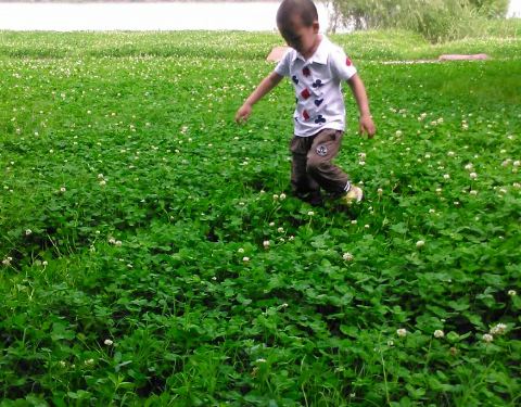 庙两对岸风景优美,花草芳香。一眼望去绿油油的一片,看着孩子欢乐的玩耍仿佛又回到了童年。