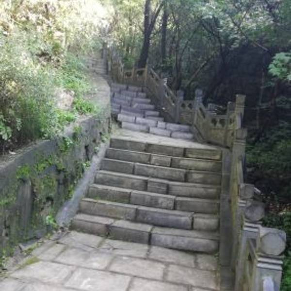 主体建筑多在北部,最富盛名的就是“仙阁登云”,参观时必须沿铁索攀援而上,一路都十分惊险