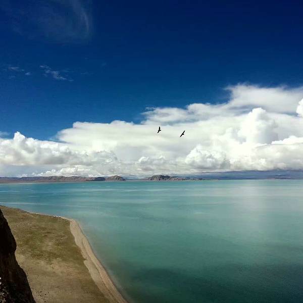 来之前虽然知道它是西藏第三大湖泊,但见到实际情况还是被震住了,还真是有些小觑了它,湖大的超乎想象,以至于我们绕着它已经开了3个小时,还没转完,可屁股都要颠簸开花了。湖面还是很安静,不像纳木错,水面波涛汹涌,搞得跟海面似的。而且还湛蓝湛蓝的,算是我人生中第一次见到如此漂亮的湖面,拍出的照片不用P,不用改,就跟桌面贴图一样。如果不是不好意思,真想下水玩一通。