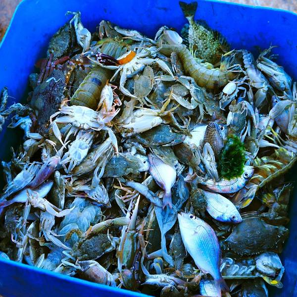 结果却很失望,全部都是小螃蟹和贝类。不过也不遗憾,因为体验真的是超级棒、摇摇晃晃的船只、一群小伙伴有说有笑,虽没多大收获,但却很开心!