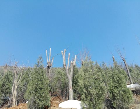 早晨起来忽然想去西山爬山,走到山前大道发现修路,走了不到一公里坑洼不平的土路,到了停车场,一上山发现杏花开了,满山遍野的杏花,春意盎然,山上空气不错,头顶是蓝天,往市里看灰蒙蒙的。