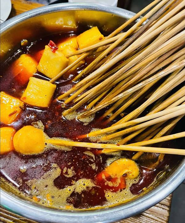 这家炭花烧烤位于旧鼓楼大街,有二层露天平台,适合夏天撸串,饭店基本都要排队。 店里有免费的小零食提供,现在有买小龙虾还送一大扎啤酒的活动,串的肉质很好,烤的火候也恰到好处,另外他家还有牛肚冷锅串串香,分大小份,味道很不错。