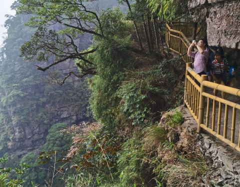 自然景点很美,但常年山顶有云雾,到分叉口以后的景点往往看不到,分叉口上山顶长线要二小时,短线徒...自然景点很美,但常年山顶有云雾,到分叉口以后的景点往往看不到,分叉口上山顶长线要二小时,短线徒一些,用时一小时多,如果天意好建议行长线,