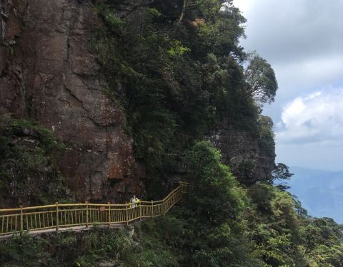 到了圣堂走廊那真是超级值回门票价的地方,栏杆外既是万丈深渊也是无限美景【景色】 身为广西本土人,第一次来金秀,第一次爬圣堂山。海拔1979米,全场约四公里多,四小时上山两小时下山。不同莲花山的秀美,圣堂山更多的是磅礴和壮美。第一段走了九百多米,心里打起了退堂鼓。再走到1.6...【景色】 身为广西本土人,第一次来金秀,第一次爬圣堂山。海拔1979米,全场约四公里多,四小时上山两小时下山。不同莲花山的秀美,圣堂山更多的是磅礴和壮美。第一段走了九百多米,心里打起了退堂鼓。再走到1.6公里时候,觉得再走一百米就放弃。再走到2.5公里时候,感觉腿反正不是自己的了,随便上!到了圣堂走廊那真是超级值回门票价的地方,栏杆外既是万丈深渊也是无限美景。再上去的高海拔小树林也是很值得欣赏。顶峰就是一个告诉你海拔多高的石碑,第一次来很值得留下照片纪念。下山两小时,小腿已经乳酸堆积成山。 广西美山⛰️圣堂我给你第一 展开