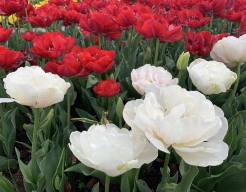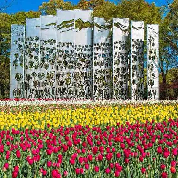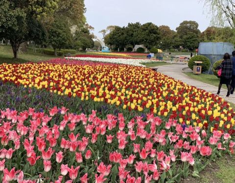 3月底-5月中旬可赏郁金香,姹紫嫣红的花海极美。