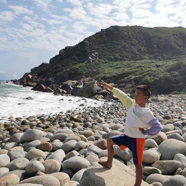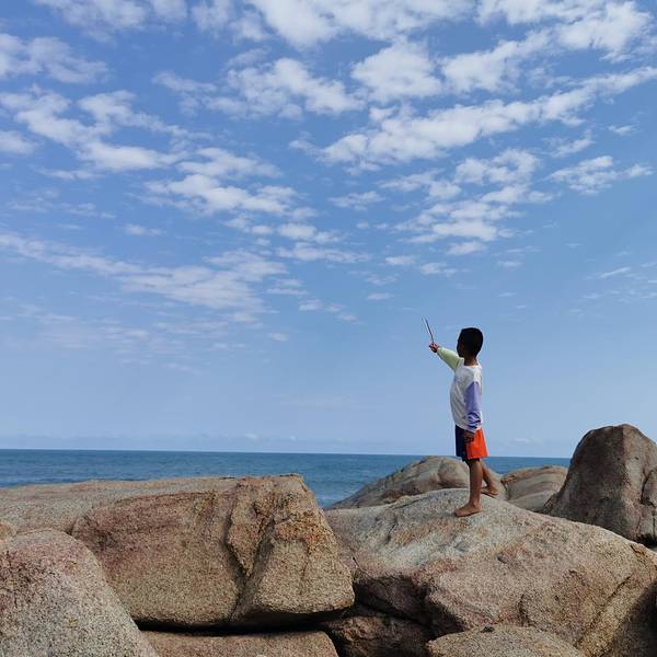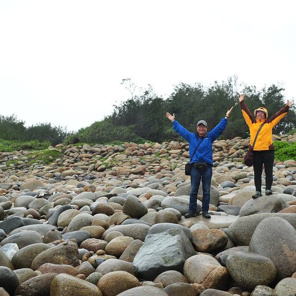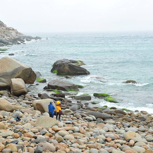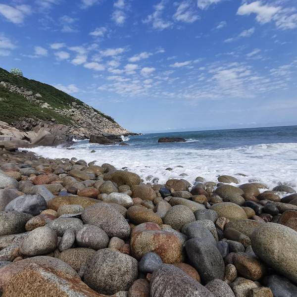 日出的时间是早上7点,提前40分钟出门,大年初一的清晨是最有年味的,小路上不停的有鸡鸭和牛穿过,低鸣着唤醒安静的村落,打开车窗微微有点发凉,空气里是熟悉的乡间味道,很久没有这般平静宁和过了,晨光初现的时候家家户户开始放鞭炮,车轮压过满地的红纸,载着一路的新春祝福出发。刚到大花角定位的地方和网上的图不太一样,像个小渔港,水面停满了渔船,渔民为了祈祷新一年的平安和丰收都赶早去船上放鞭炮。大花角一侧大花角的另一侧需要在停车场的方向往丛林深处走,导航无法用,顺着别人走过的草木稀少的路前进就能到达,走到路尽头左边是军事基地,有鹅卵石布的“大花角”的标识,右边就是大花角了,是铺满鹅卵石的海角,很特别。 展开