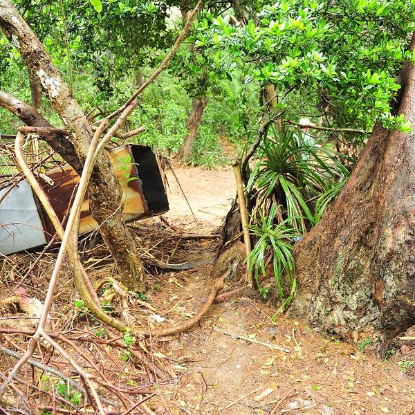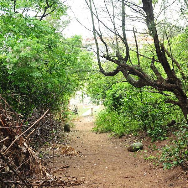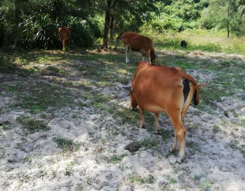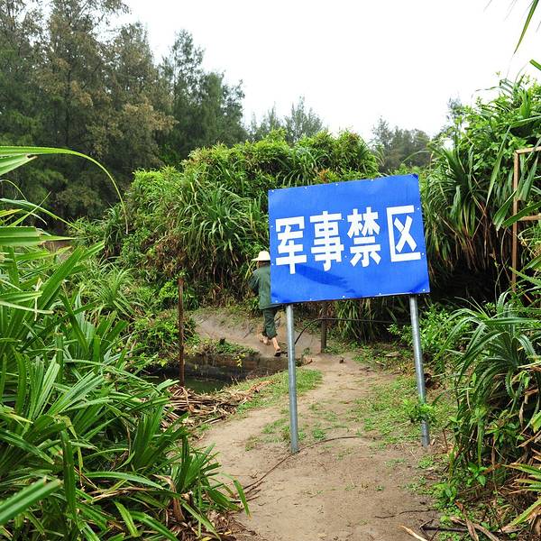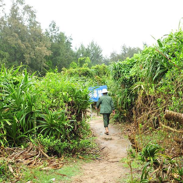 可惜今天是阴雨天,景色大打折扣。这种猪很漂亮。返回村子,在海边逗留。走过一段林中路,到达海边的大花角离开白石岭,到达万宁大花角,以为是一个开放的景区,不曾想这里居然是一个军事禁地,核心景区就在军事禁区内,我们到此想进入问问情况,刚刚靠近门口,几条军犬就狂叫不止,但自始至终里面没有出来一个人。
