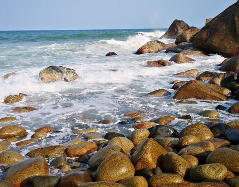 大花角—是海南省级自然保护区。弓状的卵石滩上,大石小石你拥我挤地堆积在一起大花角—是海南省级自然保护区。大花角由前鞍和后鞍两个山峦构成,双峰之间有一处宽近百米的峡谷,与双峰一起伸向浩瀚的南海,于是形成一个天然的海湾,这里弓状的数百米长的海滩上,洁白的沙带上是密密麻麻的卵...大花角—是海南省级自然保护区。大花角由前鞍和后鞍两个山峦构成,双峰之间有一处宽近百米的峡谷,与双峰一起伸向浩瀚的南海,于是形成一个天然的海湾,这里弓状的数百米长的海滩上,洁白的沙带上是密密麻麻的卵石。弓状的卵石滩上,大石小石你拥我挤地堆积在一起 展开