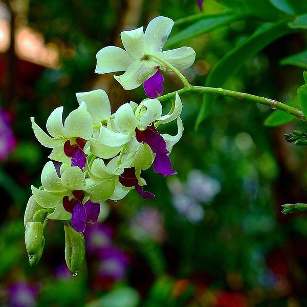 三角梅——“我的产生,是几何与色彩的完美融合。”三角梅是由三片苞叶组成的,苞片柔如彩绢。苞片中间有像蜡烛似的三根小柱子,柱子的顶端开着一朵雪白的小花朵,将其点缀的更加美丽。“含蕊红三叶,临风艳一城”,用此句来形容三角梅的风姿,恰当不过。四、热带花王:兰花