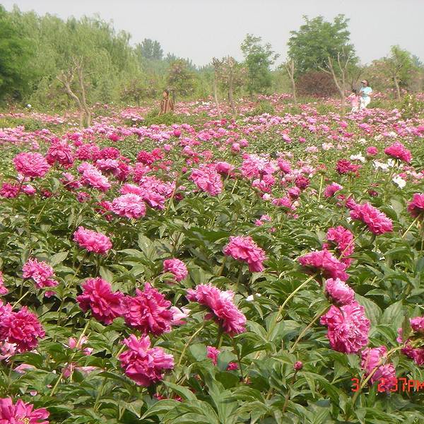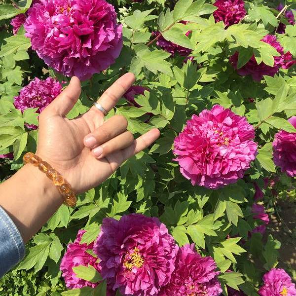 不愧为国家牡丹园,那片花海的气势才配得上国花称号。宋朝大文学家欧阳修有诗云:“洛阳地脉花最宜,牡丹犹为天下奇”。 许是我是爱花的女子,看到那般富贵妖娆,如碗口大的牡丹花成片的开放,虽然只是最平常洛阳红,但那般的美丽整个人心情都飞扬起来了。公园环境超大,分区域种植的大量各个品种的牡丹花。有早开品种和晚开品种,能保持在4月到5的花期里一直艳丽的接次开放着。看介绍还有寒牡丹。在里面还看到芍药园,看介绍才知道芍药与牡丹亲缘关系很近。牡丹芍药在植物分类上,都属于芍药属、芍药科植物。这下长知识了。还有卖药材“白芍”的,是切片中药材,据说是芍药的根。可研磨后外用用于美白的,还有方子的。不过我看着不会弄就没买。