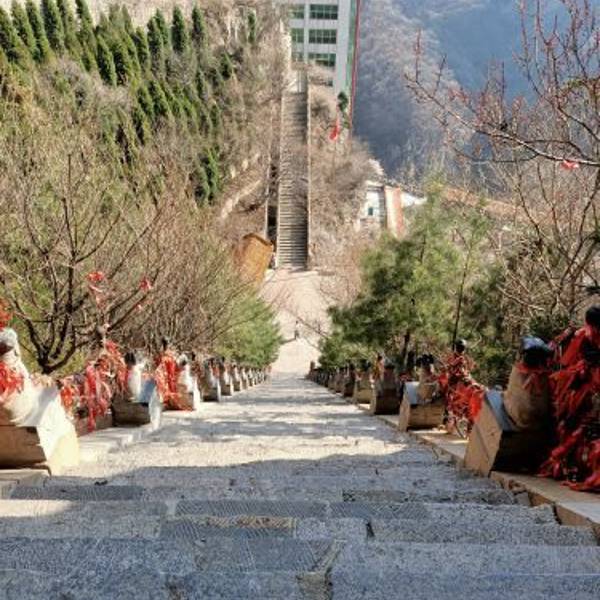 从水涛沟下来,又去了云峰寺,费尽力气爬上台阶,才发现想去看栈道还要爬一段山,于是就放弃了。