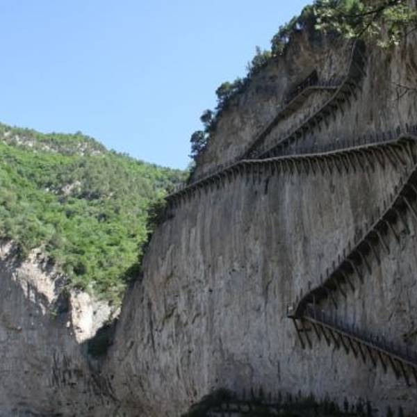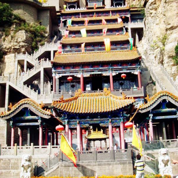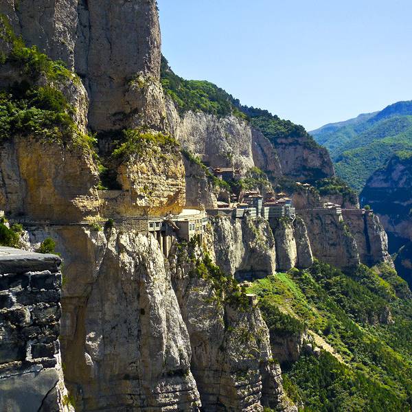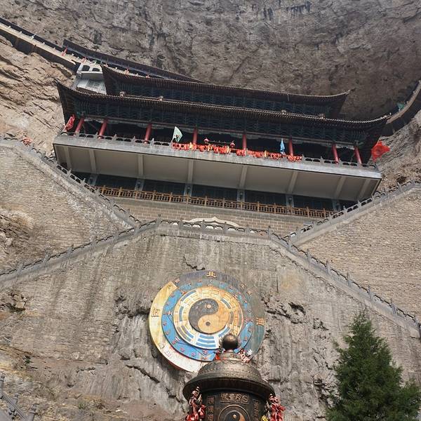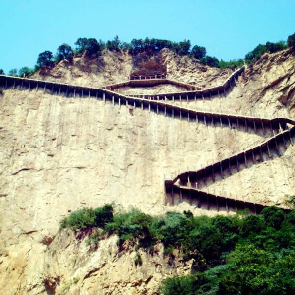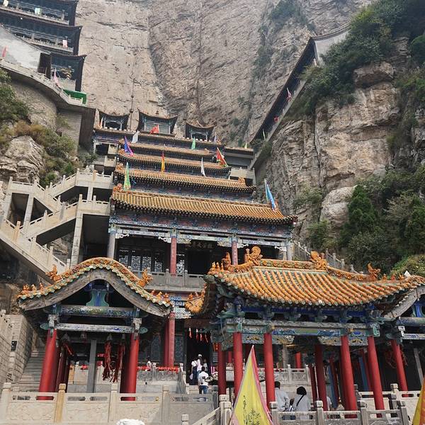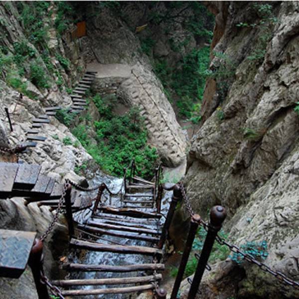 言归正传,绵山几个景点我感觉最好玩儿的几个就是:栖贤谷、天桥。栖贤谷,最好玩儿的就是从一线天踩着一根根横嵌在山壁上的钢管往山上爬的过程,由于下面都是水,所以很刺激,非常好玩儿,山上是介子推的墓,但其实大家来这儿都是为了玩儿一线天;天桥和云峰寺挨着,爬上108个台阶到云峰寺后,再往左走一会儿就会看到壁上的栈道——天桥,栈道呈之字形,爬起来不是一般的累呀,我从山脚到山顶休息了3次才爬上去,真尼玛累呀,不过很值,因为山顶有个寺庙里面有个真身佛,很值呀!虔诚的拜了拜。其他的景点什么大罗宫呀,一斗泉什么的就很一般了。
