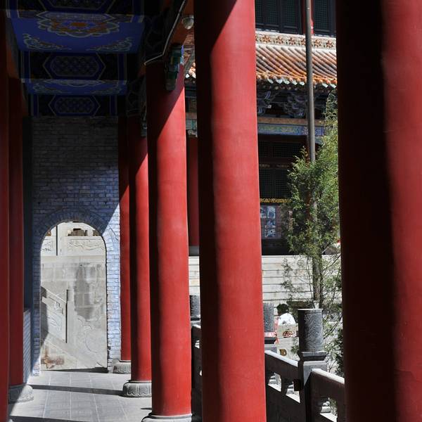 栖息谷下来就可以沿着道路一直往回走,沿路的建筑群很有特色,大罗宫道教、铁瓦寺、抱腹寺、回銮寺、铁佛寺等,人文风采与自然景观相得益彰,甚是美丽。