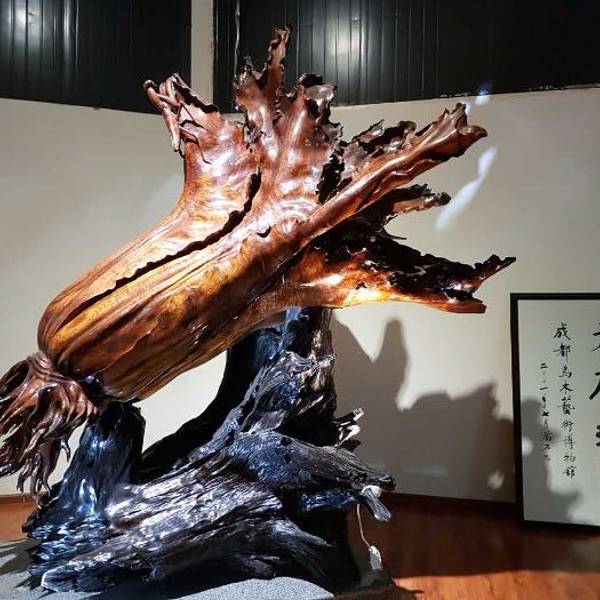 据说有很多是在都江堰挖出的乌木,各种造型非常漂亮,都是艺术品啊。