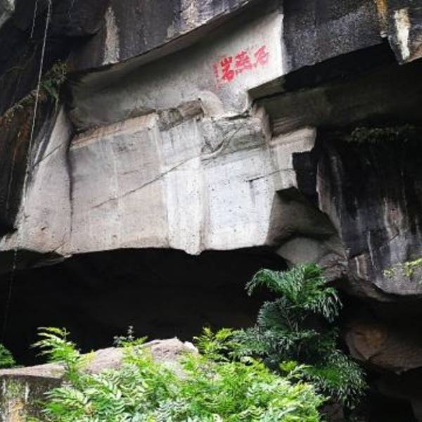 不一会儿,看见路边一堆怪石嶙峋,山头上有红漆描涂的大字,走到近前一看,果然“ 九龙 岩”。