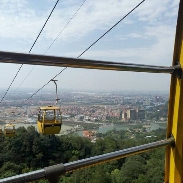 西樵山的缆车不贵,往返价格是30元。但是我没有想到的是:坐上缆车之后,却是往下走?!