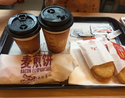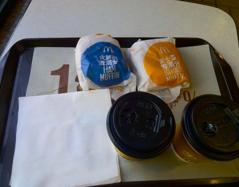 周六早晨的早餐,三大一小四个套餐。麦记早餐的价格和品质优秀比不上k记和BSK了,不过对我影响不大。喜欢麦记的咖啡的口味!这家的煎蛋要评价下,总是不成形。