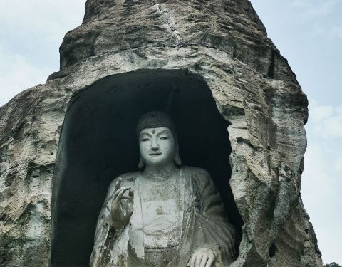 天工大佛位于柯岩景区内,开凿于隋朝,竣工于唐朝初期,历经三代石工开凿而成,高度为20.8米,是浙江四大石佛之一。天工大佛气势雄伟壮观,栩栩如生很有灵性。