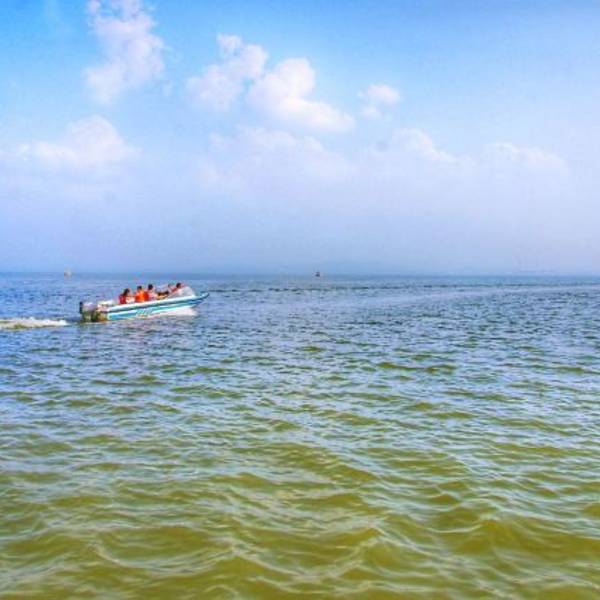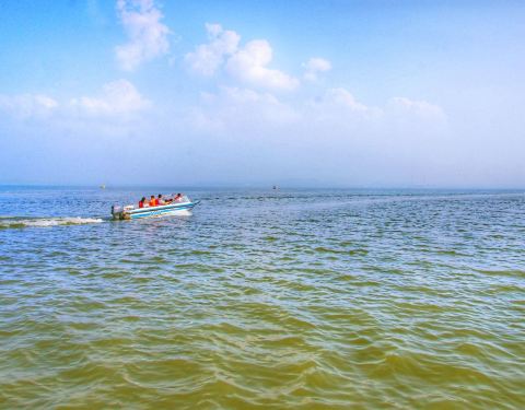 岱海,内蒙古湖泊,处在一个狭长的陷落盆地之中,属于典型的内陆咸水湖泊,其水源由周围20多条河流和中层地下水汇聚而成。岱海交通便利,地理位置优越,是著名景点。 去岱海湖畔,要做一次快艇,很刺激的。