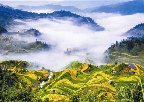 元宝山是天然的动植物园,清澈的贝江,穿流于峰峦间,峰回水曲,两岸杉、竹夹岸,苗寨木楼若隐若现,春季草木茂盛、山花烂漫,夏季竹林幽境、飞瀑倾泻,秋季十月冬荔,景色迷人。