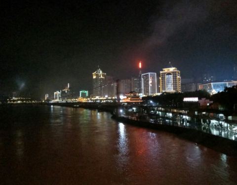 南平市依山而建,九峰山为南平标志性景点,九峰索桥两岸晚上夜景很美