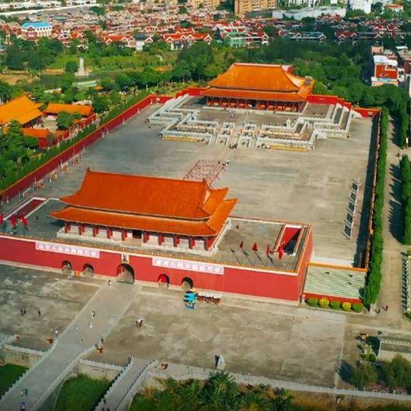 同安影视城原名远华影视城,1998年一期完工,是前远华集团投资兴建的仿古人造景观娱乐城,它是国家3A级旅游景区,位于厦门市同安区五显镇的东溪河西岸,距厦门市区35公里,在北辰山、梵天寺旅游线上。总占地面积150亩,总投资达1.35亿元。主要景观宫殿建筑:仿建了北京故宫的天安门、太和殿、养心殿三大典型建筑。其中,天安门规模仅比北京天安门小四分之一;太和殿是紫禁城内体量最大、等级最高的建筑物的仿版;养心殿是影视城所有建筑中唯一按照北京故宫养心殿的尺寸兴建的宫殿,西厢房辟为《福字馆》,正殿常年开设《皇家剧场》。