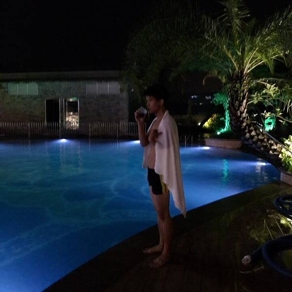 晚上拿房卡去酒店的泳池游泳,附近没有夜生活。