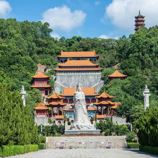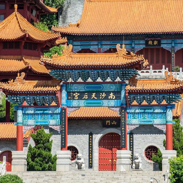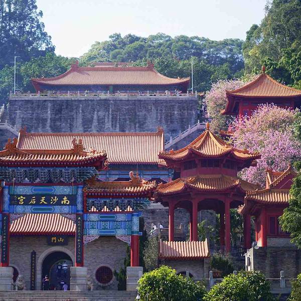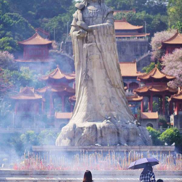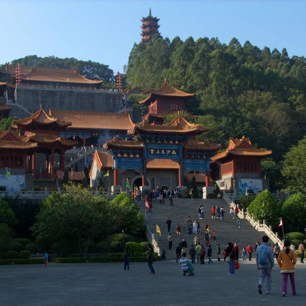 ...势于一体,其规模是现今世界同类建筑之最,被誉为“天下天后第一宫”,也[1]是东南亚最大的妈祖庙南沙天后宫,紧临珠江出海口伶仃洋,坐落于大角山东南麓,依山傍水,其建筑依山势层叠而上,殿宇辉煌,楼阁雄伟,在天后广场正中就是石雕天后圣像,是为纪念海上女神林默而建,建筑特点是集北京故宫的风格和南京...南沙天后宫,紧临珠江出海口伶仃洋,坐落于大角山东南麓,依山傍水,其建筑依山势层叠而上,殿宇辉煌,楼阁雄伟,在天后广场正中就是石雕天后圣像,是为纪念海上女神林默而建,建筑特点是集北京故宫的风格和南京中山陵的气势于一体,其规模是现今世界同类建筑之最,被誉为“天下天后第一宫”,也[1]是东南亚最大的妈祖庙。天后圣像高达14.5 米,屹立在天后宫广场正中。整座天后宫四周绿树婆娑,殿中香烟袅袅,置身其间令人顿生超凡脱俗的感觉。 展开