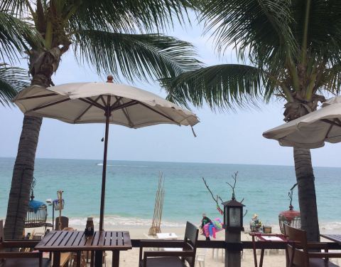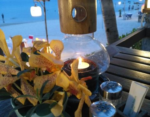 住在这个地方,这个是这个度假村里面的一家餐厅,直接在海边的沙滩上,但是价格不便宜,觉得一般,如果是图这个景色的话,附近有好多餐厅都比这个的景色还好,菜品不好吃。