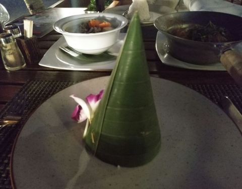 在这边我们住了两个晚上,不得不承认晚上的环境和景色真心美,从饮食来讲早上的早餐味道比较一般,早起呼吸空气真的神清气爽~先说说吃的吧,这里自助蛮好的,热带水果有一些品种是中国所欠缺的,他们已经把它做成的美味的另类产品,味道奇奇怪怪但是口感很好,我这个土包子又一次开了眼界请见谅哈哈~不过旅游不就是增长见闻的么~另外说我们吃的三明治真的很好吃~里面的菜新鲜肉也很嫩!如图的胡萝卜做的漂亮并且很脆很甜~卷着肉沾着汤汁酱口感很好~总体一顿饭下来价格偏贵了折合成人民币大概要将近300了,因为有一天吃饭赶上人暴多的惊艳,第二天我们在房里预定了位子~所以大摇大摆的就过去坐啦~提醒下~因为有早餐所以饭是从6点开始供应一直到晚上11点呢。分享一下供小伙伴们参考~