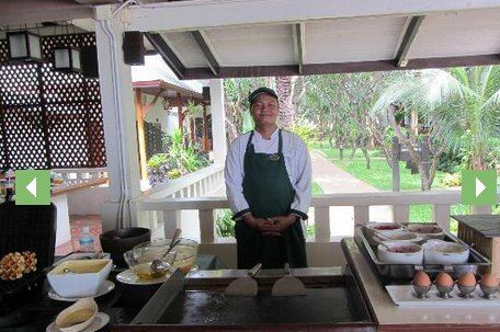 在这边我们住了两个晚上,不得不承认晚上的环境和景色真心美,从饮食来讲早上的早餐味道比较一般,早起呼吸空气真的神清气爽~先说说吃的吧,这里自助蛮好的,热带水果有一些品种是中国所欠缺的,他们已经把它做成...在这边我们住了两个晚上,不得不承认晚上的环境和景色真心美,从饮食来讲早上的早餐味道比较一般,早起呼吸空气真的神清气爽~先说说吃的吧,这里自助蛮好的,热带水果有一些品种是中国所欠缺的,他们已经把它做成的美味的另类产品,味道奇奇怪怪但是口感很好,我这个土包子又一次开了眼界请见谅哈哈~不过旅游不就是增长见闻的么~另外说我们吃的三明治真的很好吃~里面的菜新鲜肉也很嫩!如图的胡萝卜做的漂亮并且很脆很甜~卷着肉沾着汤汁酱口感很好~总体一顿饭下来价格偏贵了折合成人民币大概要将近300了,因为有一天吃饭赶上人暴多的惊艳,第二天我们在房里预定了位子~所以大摇大摆的就过去坐啦~提醒下~因为有早餐所以饭是从6点开始供应一直到晚上11点呢。分享一下供小伙伴们参考~