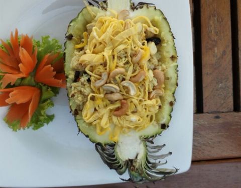 餐厅在查汶海边著名的Banana Fan Sea度假村内,以泰式自助为主,菜品中规中矩,不会踩雷。空心菜做得很适合中国人的口味,海鲜炒饭很新鲜,广受食客的好评。