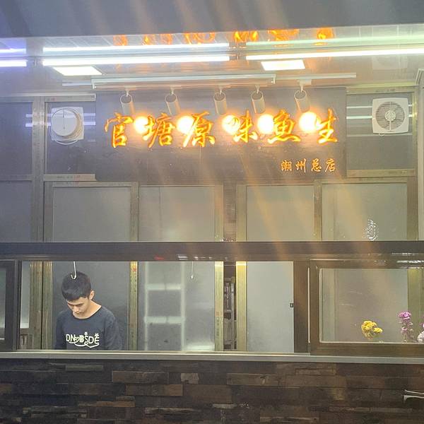 之前看美食纪录片有提到潮州的鱼生很出名,从此种草。借和家人来潮州旅游的机会,特来网评不错的官塘原味鱼生店尝个新鲜。 环境:晚上到店,白色的发光字在夜间格外显眼,店内有4、5桌,也可以选择在店外的塑料...