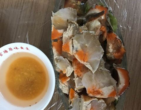 关于停车:店家门口路边的辅道有划线停车位可以停车,但不一定有位置,最好还是步行或者打车前往。尝鲜之旅:认真思考了一阵,考虑到刚吃完晚饭,胃容量极为有限,只点了石坚鱼鱼生和咸膏蟹。平生第一次吃鱼生,还得请店员教怎么吃。只见店员夹了几条鱼生放在碗里,然后在每个调料里各放一点各式各样的配料,最后舀一小瓢蘸料(有点像花生酱)淋在上面,搅拌均匀后,让我们包着一口全吞下去。感觉和家乡贵阳的丝娃娃的吃法有异曲同工之妙,于是学着包了第一个,之前还担心吃不惯生的鱼,没想到一口下去完全感觉不到鱼的腥味,只有浓浓的花生油的香味,爽口、好吃。只是接下来的咸膏蟹就不那么好接受了。店家用的青蟹,抬上来是冰冻状态的(之后结账时专门询问了下店家,咸膏蟹腌制了3天,为了保鲜,必须是在带冰碴儿的状态下给到客人),需要蘸类似于白醋的蘸碟吃。第一口吃下去像是吃冰淇淋,还不错(也可能是舌头还没反应过来)。第二口试吃蟹膏,腥味扑鼻,不是考虑到这东西那么贵,差点全给吐出来。属于完全接受不了的腥味。然而据说蟹膏才是精华,看来我是无福消受了……这次体验算是喜忧参半,看来在吃货道路上总得经历点坎坷才能成长……