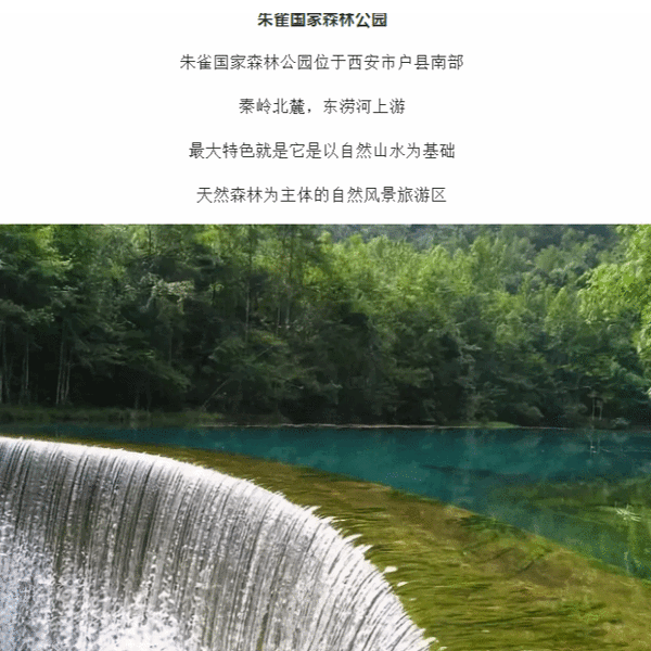 天然森林为主体的自然风景旅游区。朱雀国家森林公园位于西安市户县南部