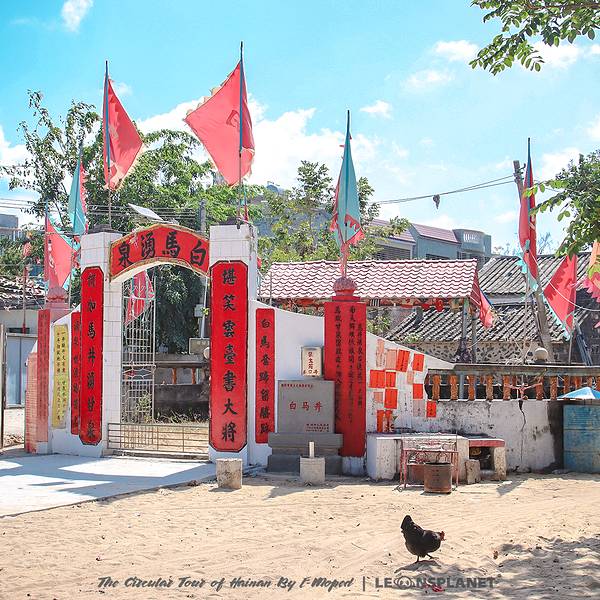 不过,这并不意味着,儋州是一个主打原生态旅行的「蛮荒之地」,相反,它其实是海南最有文化的地方。儋州拥有姓名可以从汉武帝始设儋耳郡算起,唐初「改郡为州」正式建制,宋元时期大量移民垦殖,于是儋州迎来了一批又一批南渡琼海的文官武将,不论他们缘何而来,伴随他们入岛的先进知识和技术,无疑是为南海上漂浮的这片「文化荒漠」雪中送炭。而我选择从儋州域内临海的白马井镇,开启此番海南摩旅的人文篇章,很大程度上是因为那个骑白马的大佬……没错,就是多次提到的东汉伏波将军马援。 他老人家在这波「知识下乡」浪潮中首当其冲,之前游历东方时就去看过他遗留的那口古井,这次来到儋州,又以同样的方式与伏波将军不期而遇。不知道哪个是「正版」,也可能都是,但儋州的白马井装饰得比东方的出彩多了,虽然遗址也是小得可怜,但总归是没有被人忘记,至今仍有村民保护和使用,实属不易。