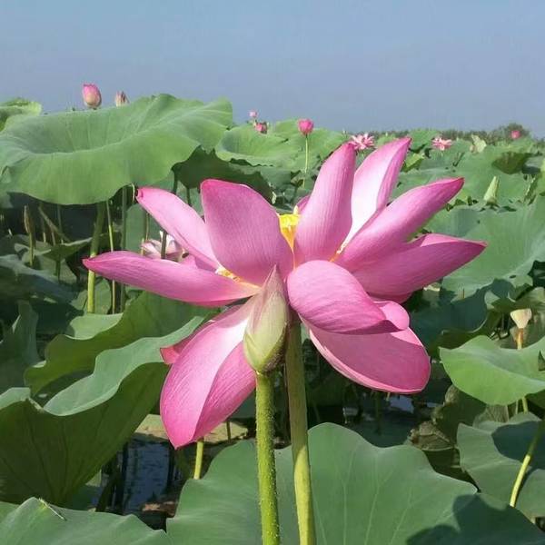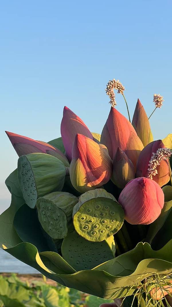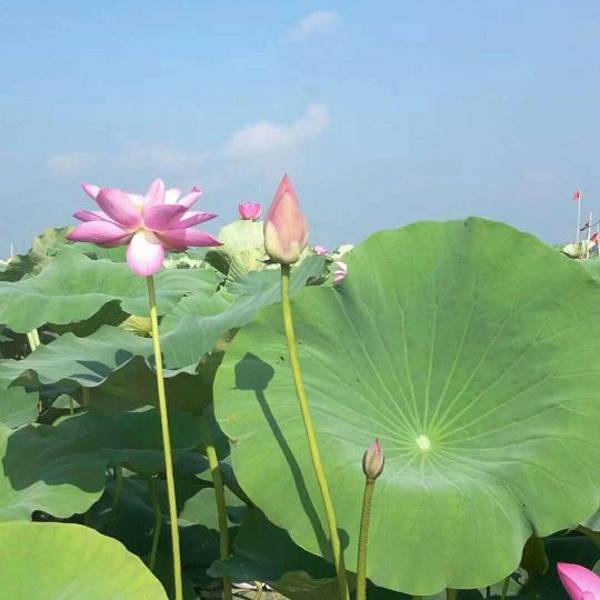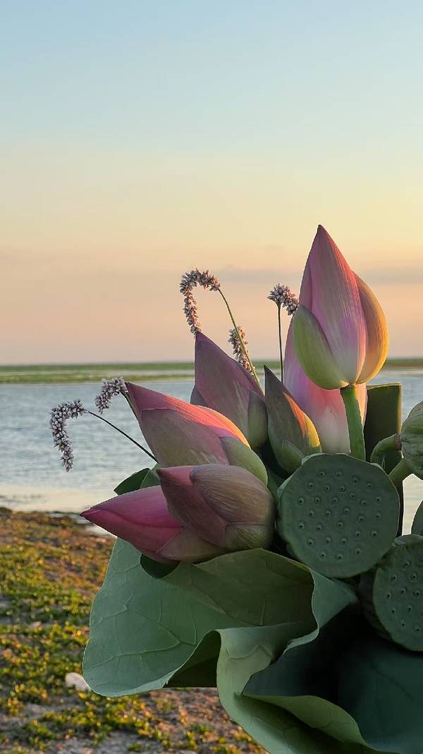 每年盛夏,岛周围十万亩野生荷花连片盛开,蔚为壮观。