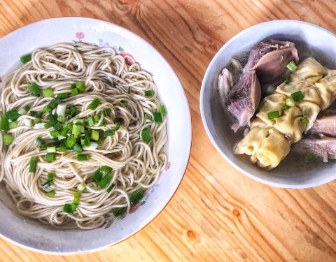 ☞2019.1 ∝╬══→ 拥有2300多年历史的江南古城☜ 第一次路过 鸭肉卖光了 挣扎一下走了~ 第二次返回 恋恋不舍~点了其它 不大的苍蝇馆 却有着独特的好味道 鸭子的各个部位都能做 而且闻不到一丝鸭腥气 门口有摆放小餐桌 老板娘推荐鸭爪 「面+鸭爪+鸭肫+千张包」¥20 一份面 一份菜 清清爽爽~细软的面条浮上葱花 有鲜美的汤底;鸭爪和鸭肫酥嫩又入味;千张好似百叶包 用白绳系着 肉紧鲜香 出品真心不赖 还好没错过 印证那句:美味在民间