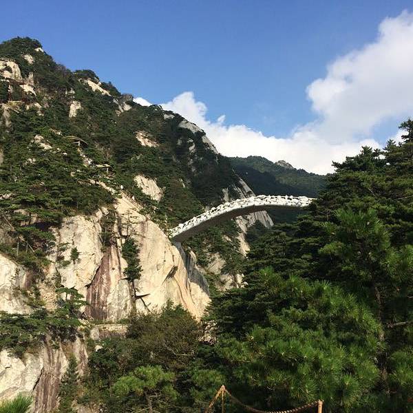 “连心桥”后面就是“哲人峰”,这个“哲人峰”可是整个 罗田 天堂寨景区内重中之重的标志性的景点!翻看所有的简介以及网友的游记攻略,绝大多数提到这里,都说“哲人峰”上的风景不错!