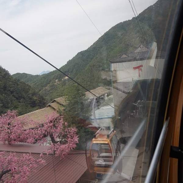 从下了大巴车到索道站,有一小段爬升是台阶路,不短也不长。我们因为到得稍早一点,乘坐缆车的游客还不是很多,可以接受。
