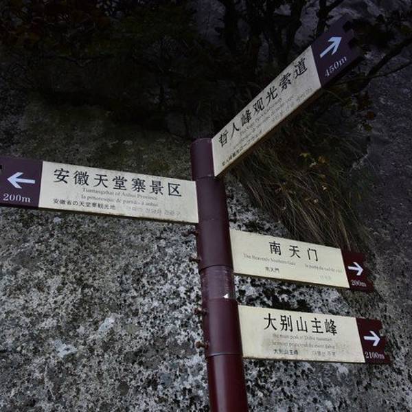 一边继续前行是“南 天门 ”;而另一侧前行是 安徽 的“天堂寨”,也就是网友说的:一脚踩两省的地方。