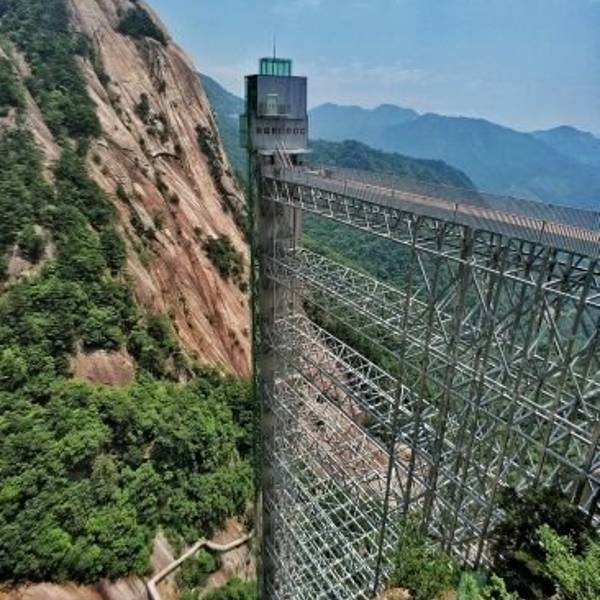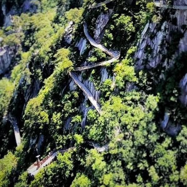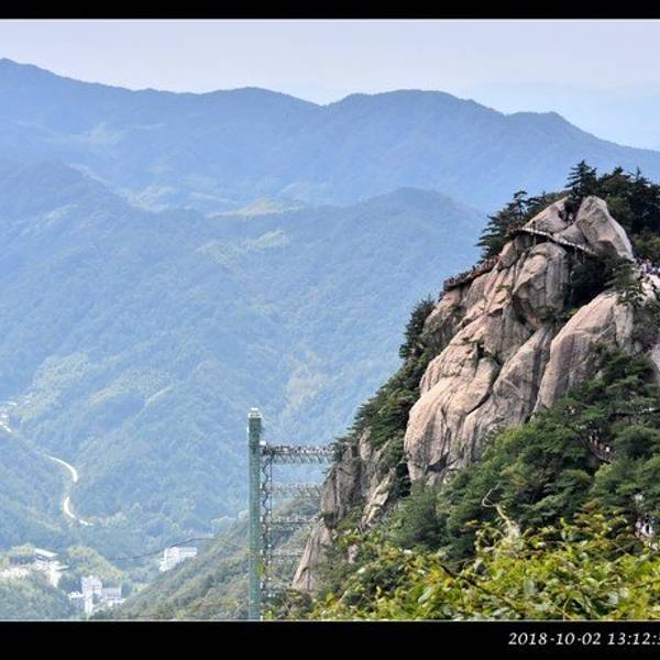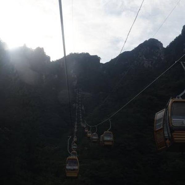 由于前段时间暴雨山体滑坡,导致部分路段重修中,游客必须坐索道上山,坐观光电梯下山,属于强制消费...早上7:00出发,出门过早,凭景区门票可以免费坐景区内观光巴士到达登山入口。上山步行20分钟到达索道入口。