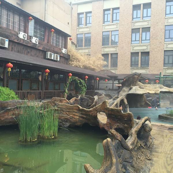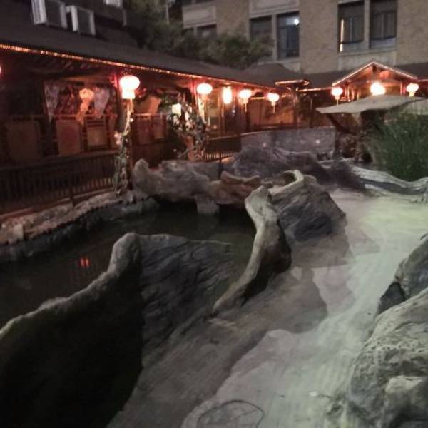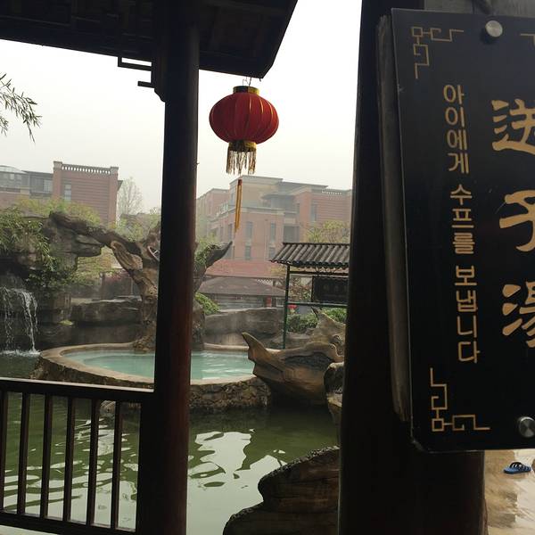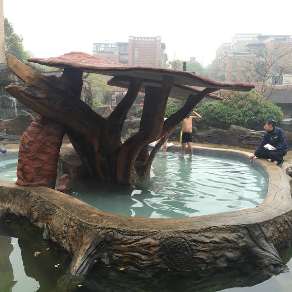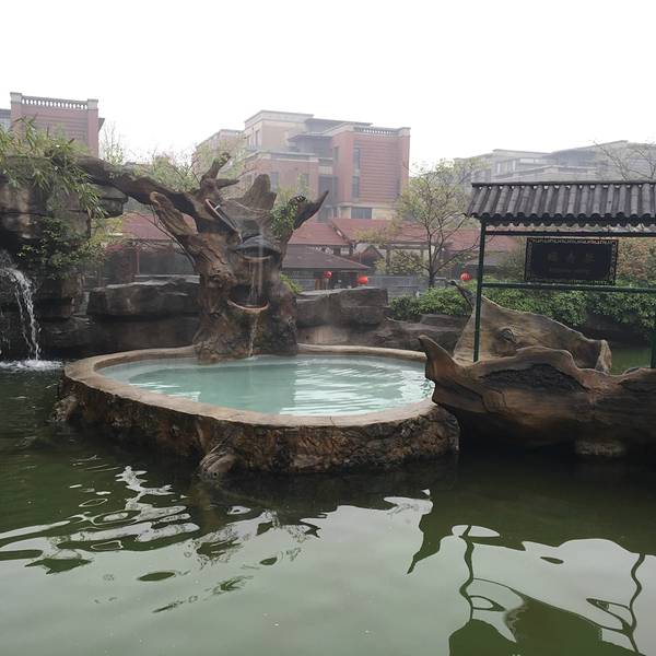 温泉分好几个区域,有不同主题的,有露天的也有室内的,他家的特色温泉是火山泥的,不过还有另外收钱,30块钱一次,对于“泥浴”并不感兴趣就没有泡这个。温泉区的环境比较好,是个小的园林,非常干净。到处都有休息区,泡完了可以休息一会儿接着再去泡。这边的温泉基本上都是小池子的,有不同的主题,很好奇这个送子汤到底是个什么“送法”,哈哈。还有牛奶浴、玫瑰浴、贵妃浴各种听名字就很想去泡一泡的。还有一个土耳其亲亲鱼疗,里面有很多的小鱼游来游去啃脚丫子,很痒,但是我们去的那天感觉小鱼都兴致不大,也可能那天池子里太多人太吵了,鱼儿都不往人堆里来,偶尔过来一下咬一口就游走了,很任性。园子里有几个服务人员隔一会儿就拿个类似温度计的东西测一下水温,基本上温度都控制在最舒服的状态。园子里还有个生活区,可以在这边补充点能量,这里免费提供稀饭、馒头、咸菜和水煮花生,泡温泉特别容易饿,好多人在这边吃东西,除了免费的之外,还有饮料之类的是收费的,刷手卡然后出去结账,一瓶王老吉8块钱,也是贵的呢。因为一直有人在不时的测温泉的水温,所以温度基本上都是刚刚好的,很舒服。不过温泉不能泡的太久,泡久了感觉有点缺氧不舒服,看到介绍里说不能超过15分钟,我基本上是泡十分钟左右然后出来在园子里逛逛,然后换别的池子接着泡。