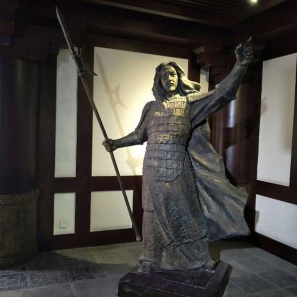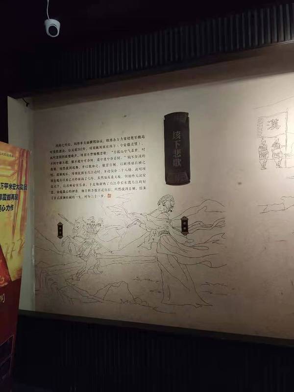 门口处,项王驰马的雕像静静矗立。向前台小姐姐索要了门票的凭证