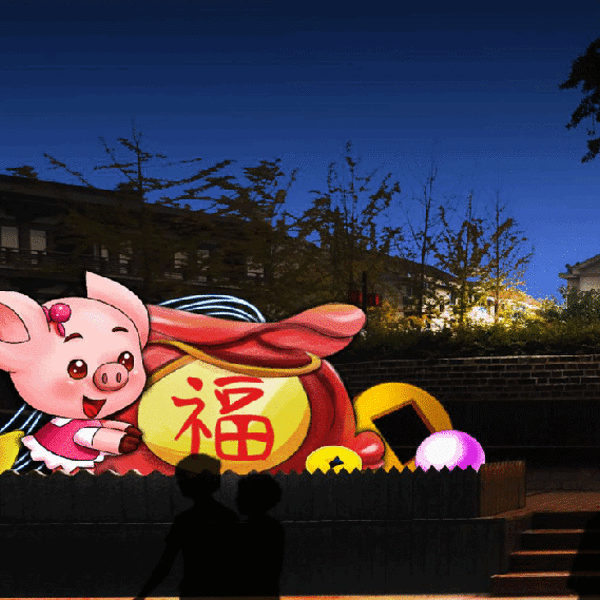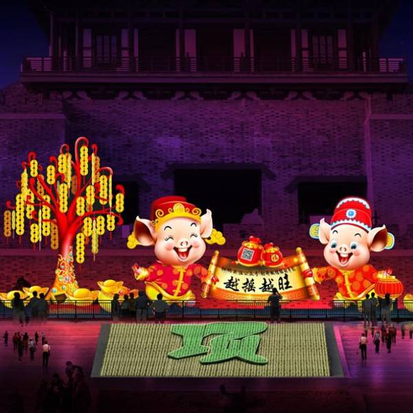 一年一会,西楚芳华。本次灯会以时尚审美的现代设计,通过现代光影互动理念与传统灯组工艺制作相结合的方式,使各个场景与整体灯景相融,营造出宿迁浓郁的新春节庆氛围。届时,项王故里内外,众多灯组缤纷闪耀,描摹着华丽的光影长廊,为您一一还原和讲述着关于西楚的古老民俗、历史人文、旅游新亮点和文明创建新成果。今年,宿迁更是打造了四大主题灯区——“金猪闹新春”、“欢乐满宿迁”、“西楚风采颂”和“童趣忆光年”。“金猪闹新春”以萌萌的卡通金猪造型寓意财源滚滚、福气不断,它们或手捧福袋,或手持钓竿,或倚靠元宝,气韵生动、憨态可掬,令人惊叹不已。“欢乐满宿迁”以祝福语、舞蹈、鞭炮、金猪、繁花等美好元素,铺展开福气满满的西楚画卷,其中更有宿迁旅游品牌形象新口号“心宿宿 情迁迁”的灯组,诠释了醉美宿迁自然生态和文化生态风情。用光影讲述宿迁的传统文化和城市名片。气势豪迈的西楚霸王、原汁原味的古城风貌、古色古香的西楚宫灯、秀美灵动的两湖两河风光、现代简约的高铁......一起来邂逅“西楚风采颂”的视觉盛宴吧!动画人物、民间故事、梦幻森林、跷跷板、月光琴.......玩转“童趣忆光年”,于绚丽灯影之中,于时光穿梭之间,梦回童年。等您!亮灯仪式,精彩无限!