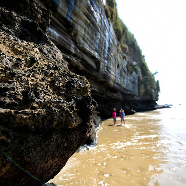 五彩滩位于涠洲岛东海岸,景点内的海蚀崖、海蚀平台、海蚀洞随处可见。这种海蚀崖、海蚀洞、海蚀平台“三位一体”的海蚀地貌景观在我国沿海与岛屿沿岸实属罕见,其规模之大,典型而完整集中的令人叹为观止。五彩滩是涠洲岛上看海上日出的绝佳地方,平台上一道道的海蚀沟、青苔和海水,在朝阳的照映下,五彩斑斓,十分漂亮。