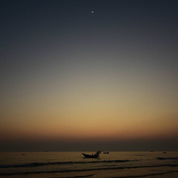 每个水坑里都照应着天空的碧蓝日出渔家准备出海打鱼